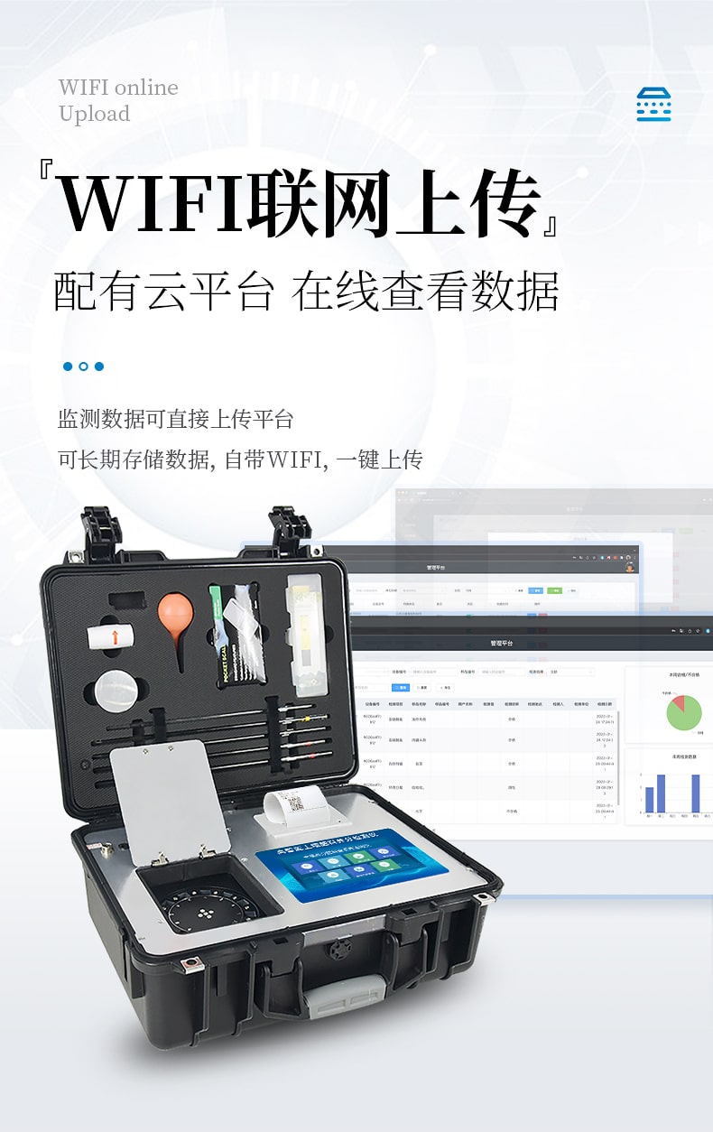 6、儀器標配wifi無線上傳、4G聯(lián)網(wǎng)傳輸、GPRS無線遠傳,快速上傳數(shù)據(jù)。